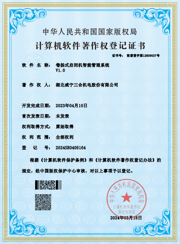 20240318卷揚式啟閉機智能管理系統(tǒng)--計算機軟件著作權(quán)登記證書