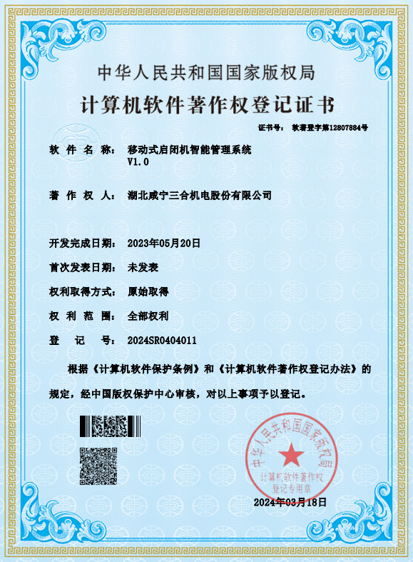 20240318移動式啟閉機智能管理系統--計算機軟件著作權登記證書